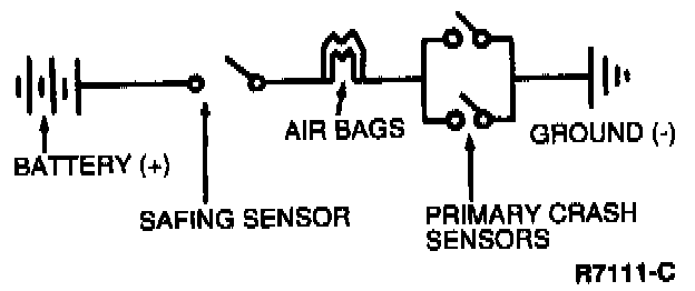 2. When a primary and safing sensor are closed at the same time, electrical current will flow, igniting the air bags.