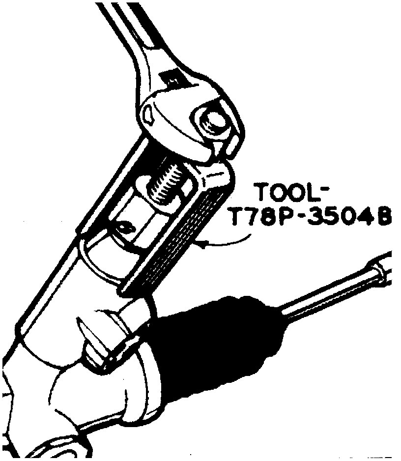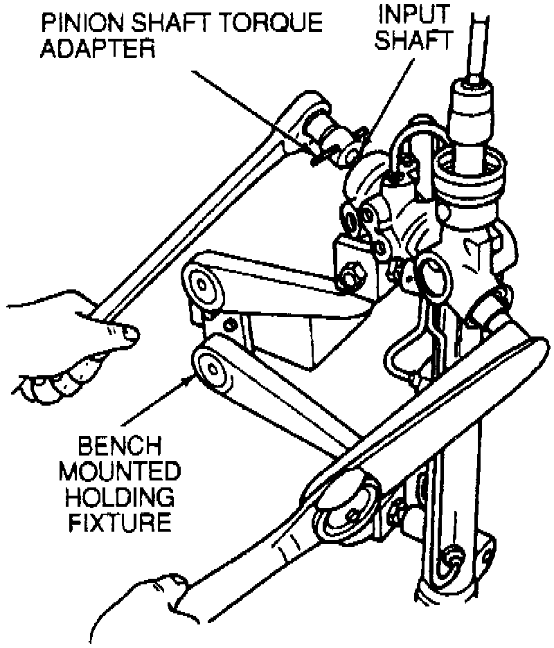 11. Using pinion shaft torque adapter T86P-3504-K, or equivalent, to turn input shaft, count number of turns from center to each stop. This should be approximately 1 1/2 turns. If number of turns is unequal, pull valve assembly out of housing far enough to free pinion teeth. Rotate input shaft 60° (one tooth) in direction which required fewer turns from center to stop. Reinstall valve assembly and check if gear is centered.