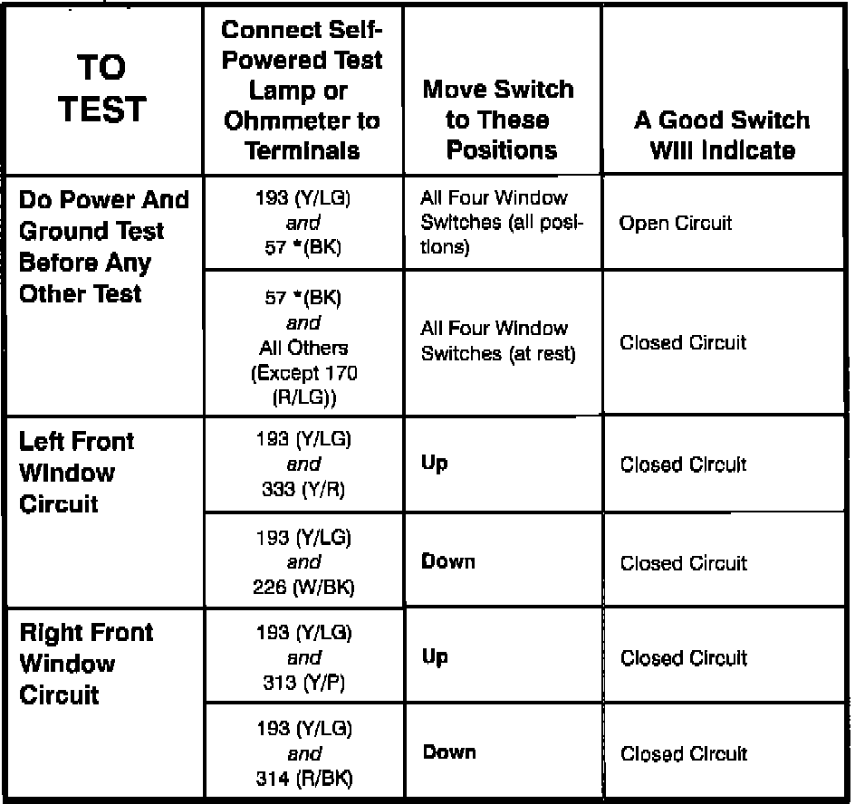 Power Window Switch: Testing and Inspection