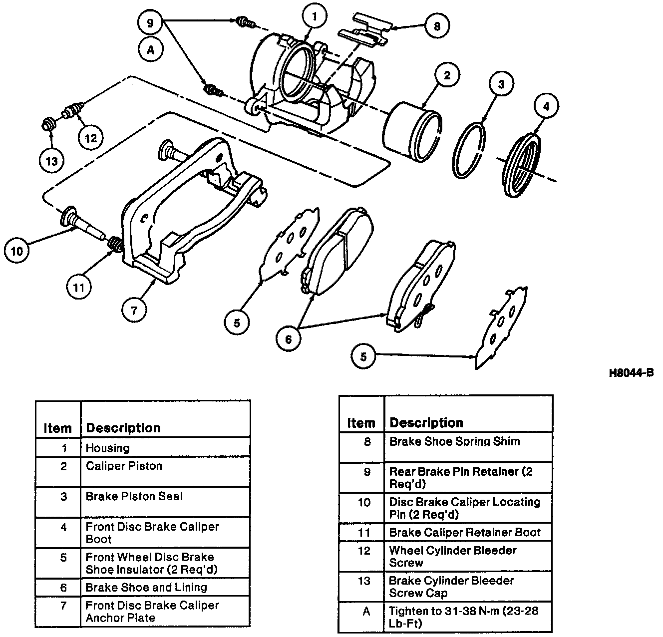 CAUTION: Do not let the caliper hang with its weight on the brake hose.