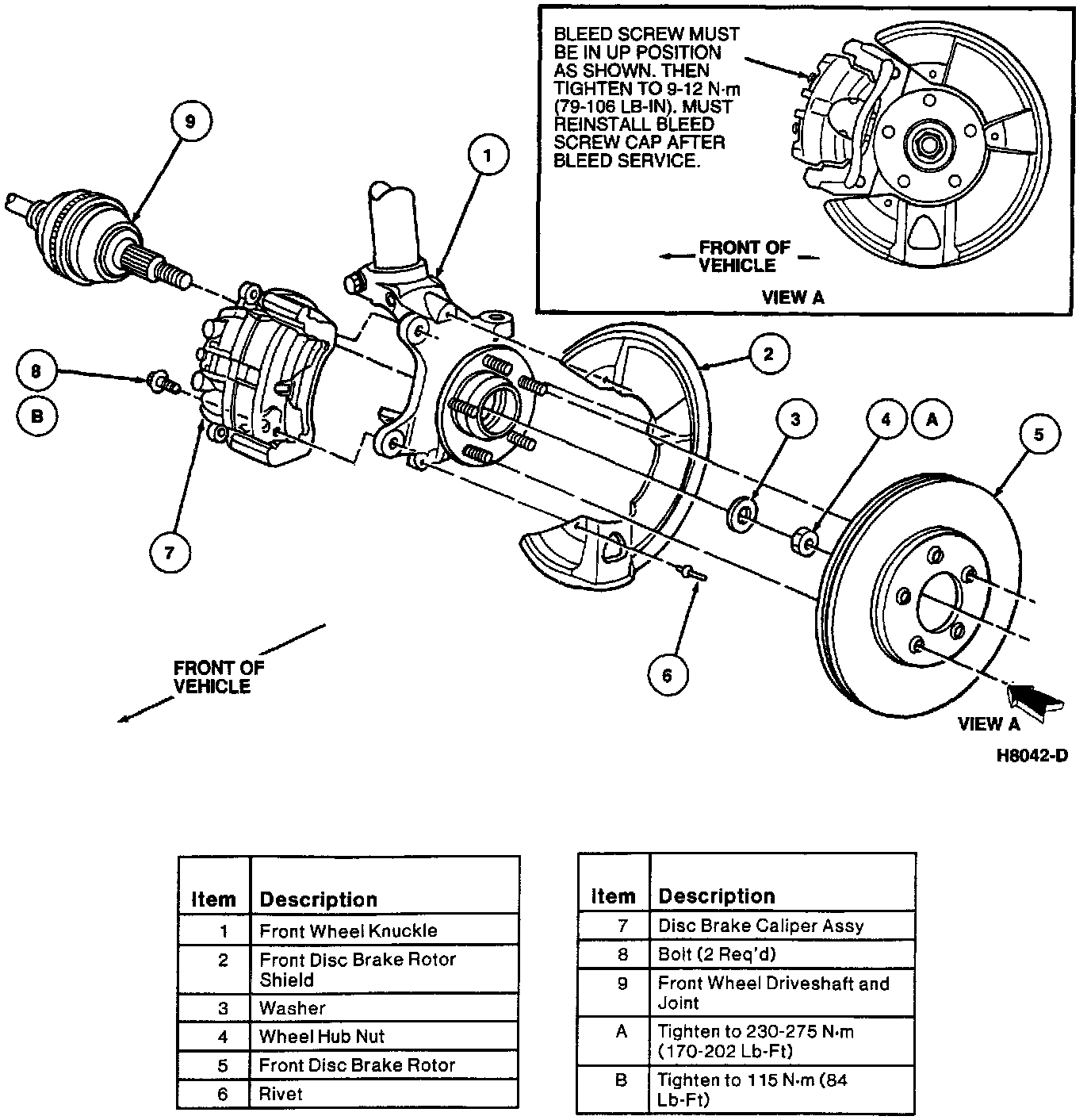 NOTICE: If the caliper was removed for service, make sure it is installed on the correct knuckle. The caliper bleed screw should be positioned on top of caliper when assembled on vehicle.