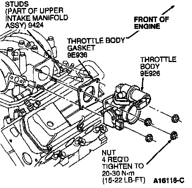 14. Remove the EGR valve (EGR valve) (9D475) from the upper intake manifold.