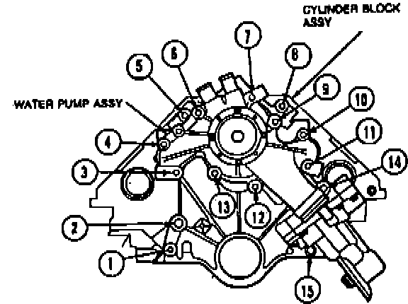 7. Disconnect coolant bypass hose and heater hose from water pump.