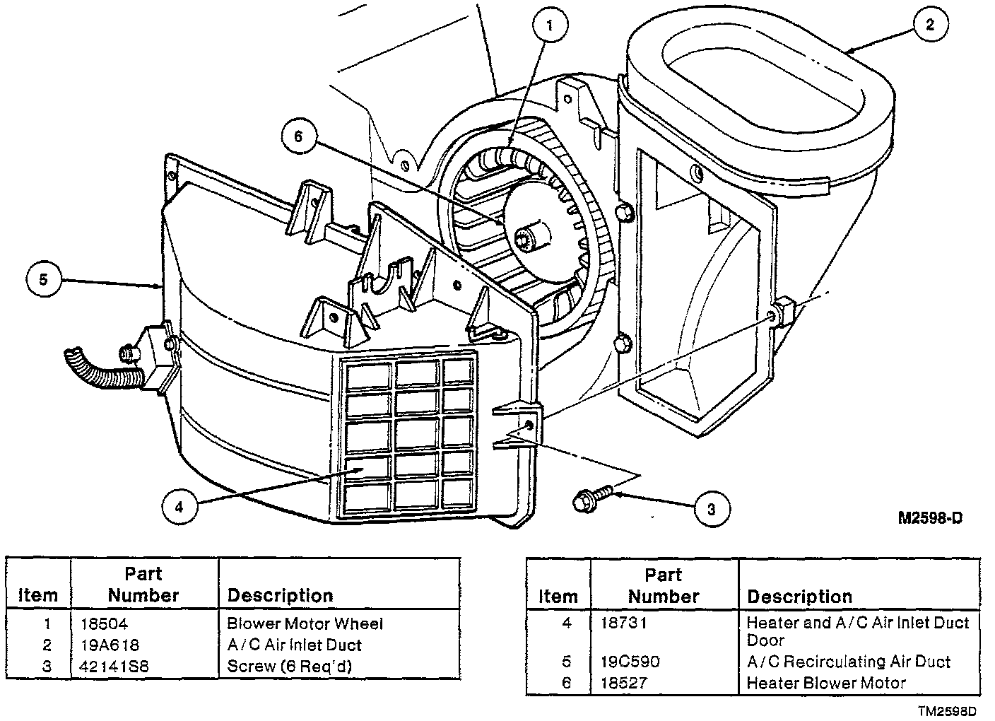 3. Remove the six screws retaining the recirculating duct and remove the A/C recirculating air duct from the A/C evaporator housing.