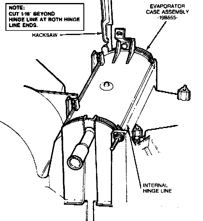 10. Using a hot knife or a small saw blade, cut the top of the A/C evaporator housing between the raised outline.