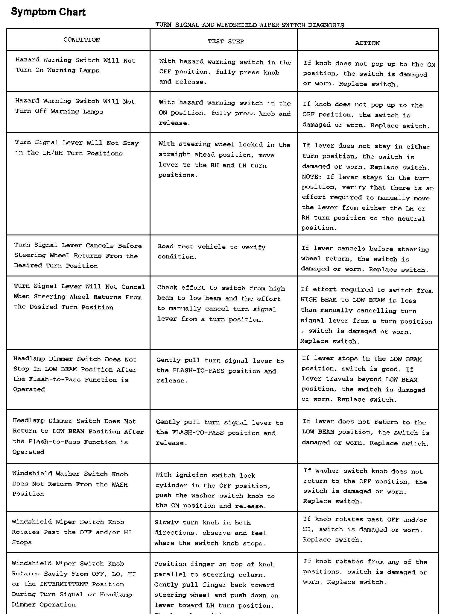 - Turn Signal and Windshield Wiper Switch Does Not Operate