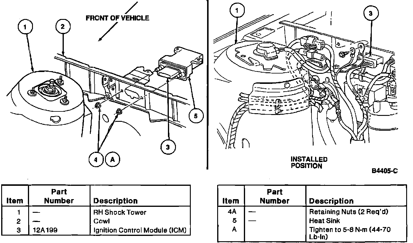 4. Insert ICM/heatsink assembly into cowl dash extension panel enough to have mounting studs protrude into the engine compartment side.