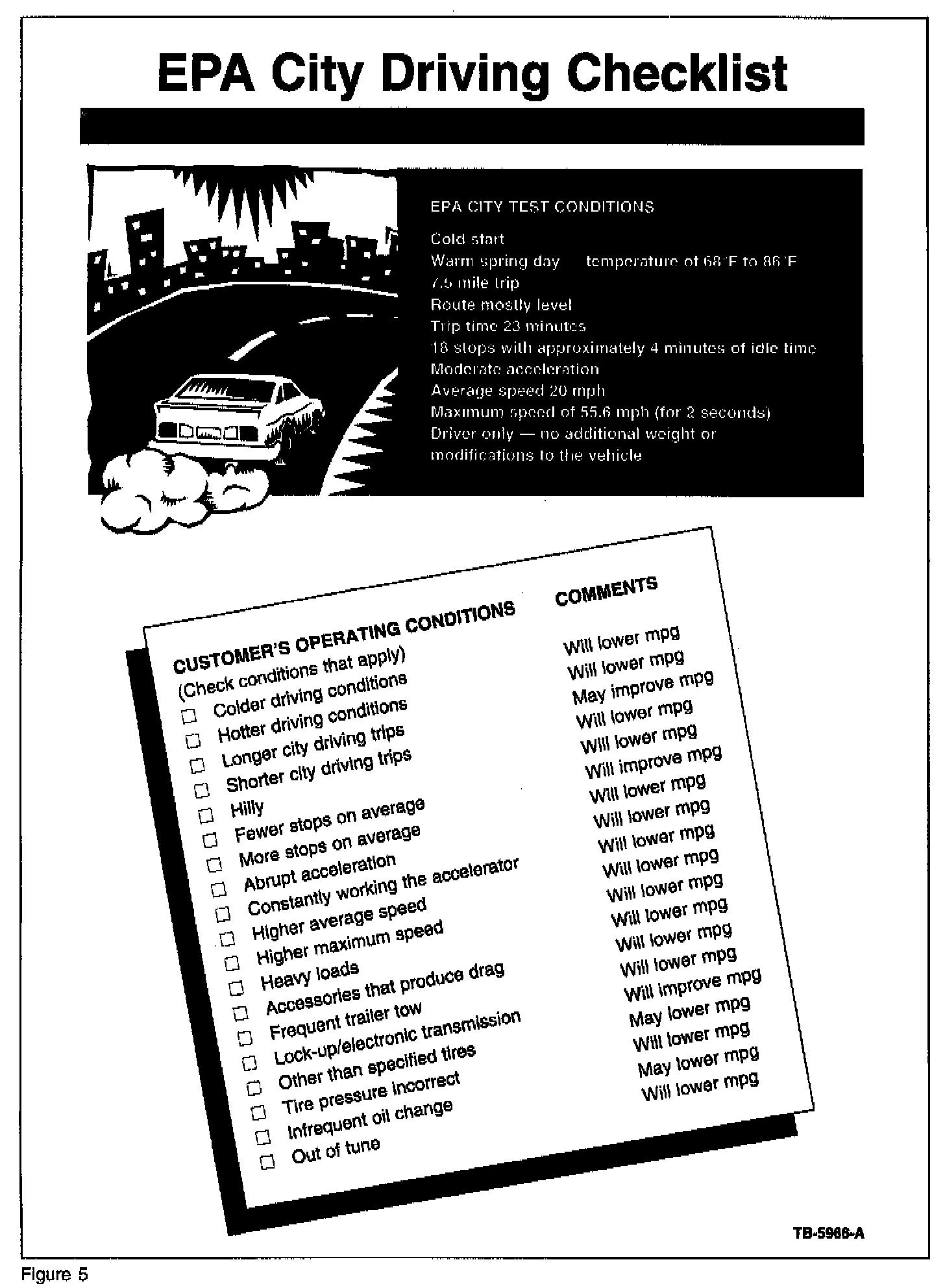 Refer to the Figures of this TSB. Consult this TSB and share with customers to improve their understanding of fuel economy factors.