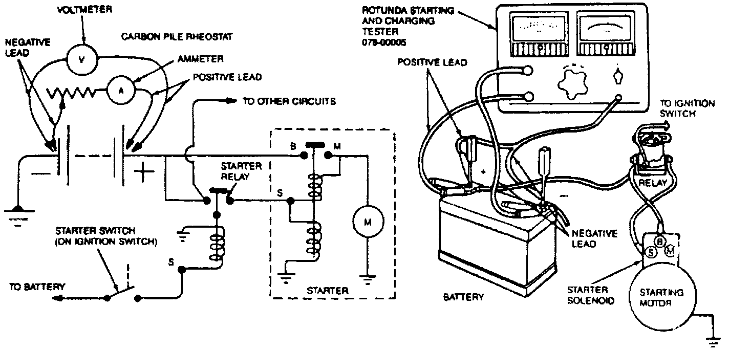4. Stop cranking engine, then reduce resistance of carbon pile until voltmeter indicates same reading as obtained with starter cranking the engine. Ammeter should indicate 140-200 amps.