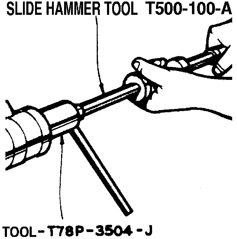 6. To remove rack high pressure oil seal, insert rack oil seal remover T78P-3504-J, or equivalent, into gear housing until it bottoms. Using a suitable wrench tighten tool until expander is fully tightened, then attach a suitable slide hammer to tool and remove seal.