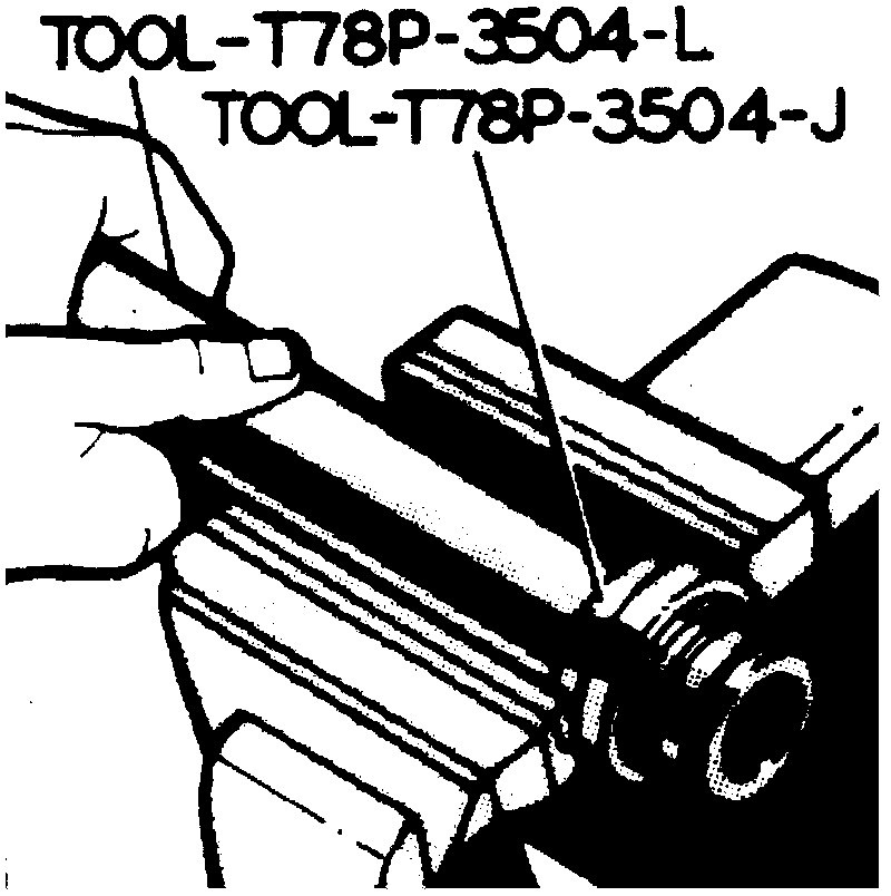8. Position small diameter end of Teflon(R) ring sizing tool T78P-3504-M, or equivalent, into righthand side opening of gear housing.