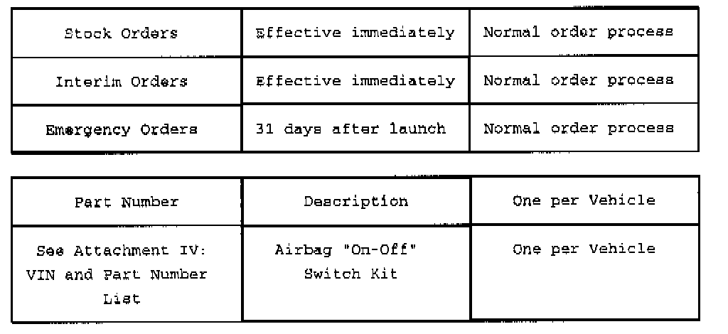 Parts will not be direct shipped for this program. Order your parts requirement through normal order processing channels as noted in the table.