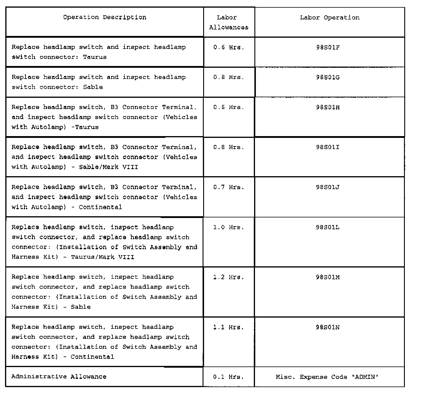 Attachment II - Labor and Parts Information