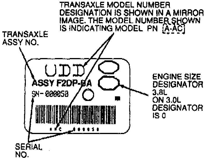 The identification tags, located on top of the converter housing, includes transaxle assembly number, serial number, and build date.