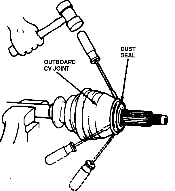 With halfshaft removed, use a light duty hammer and screwdriver to tap evenly around seal until unseated and remove seal.