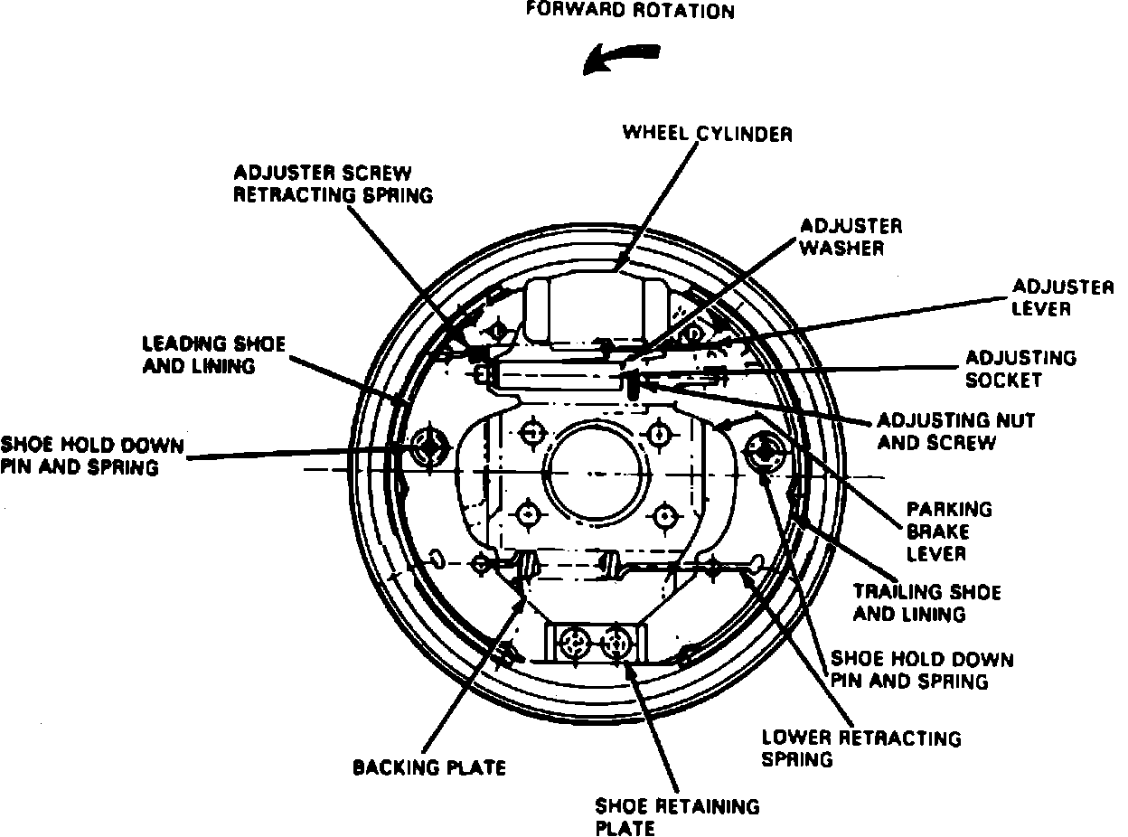 Although the brakes are self-adjusting, an initial adjustment will be necessary after a brake repair. The initial adjustment can be obtained as follows: