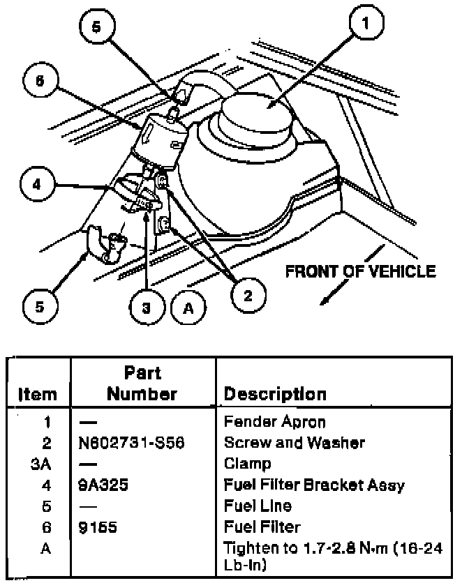 1. Install fuel filter into the bracket, ensuring proper direction of flow.