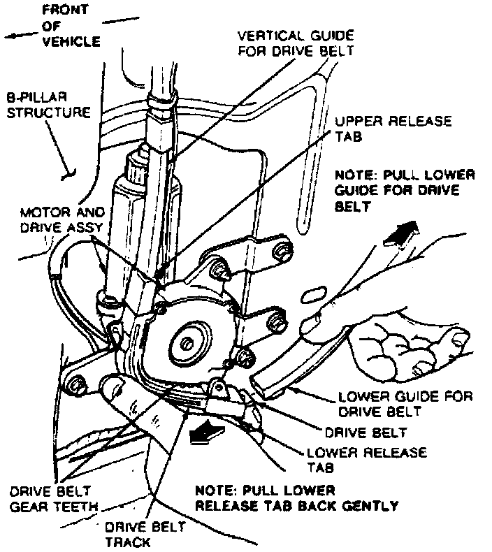 14. Disengage vertical guide release tab at B-pillar bracket.