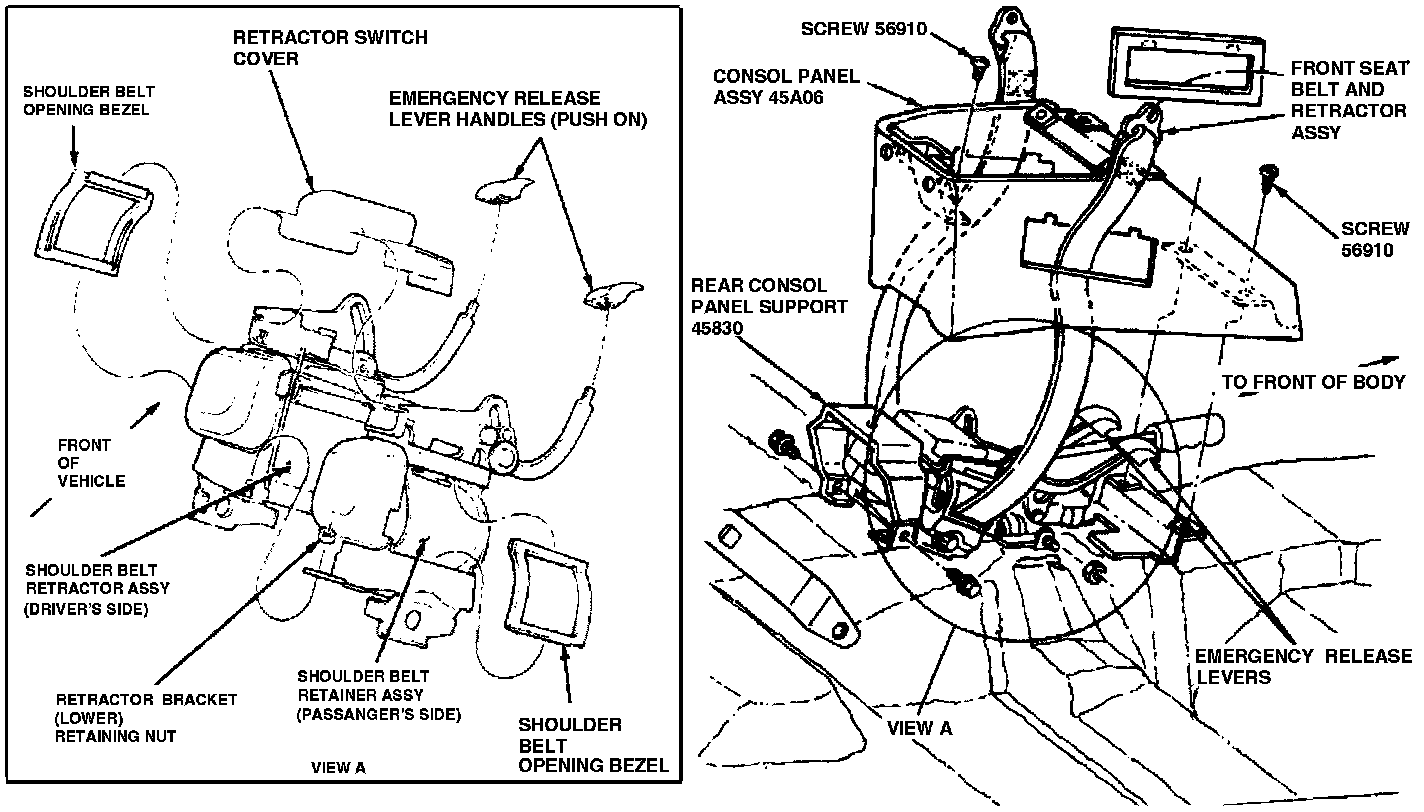 b. Tighten shoulder belt retaining bolts to 8-12 ft lb.