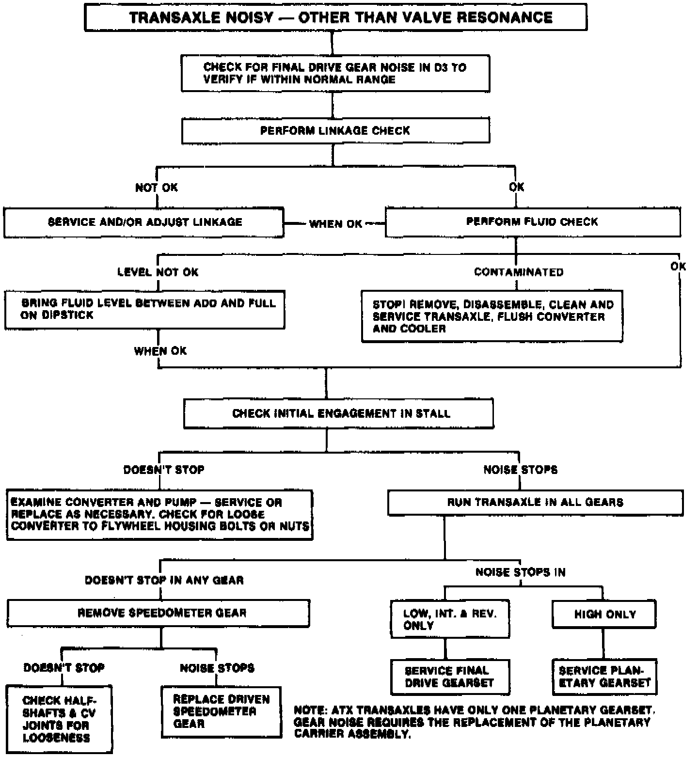 Refer to the Transaxle Noise Diagnosis Flow Chart, to diagnose transaxle noise.
