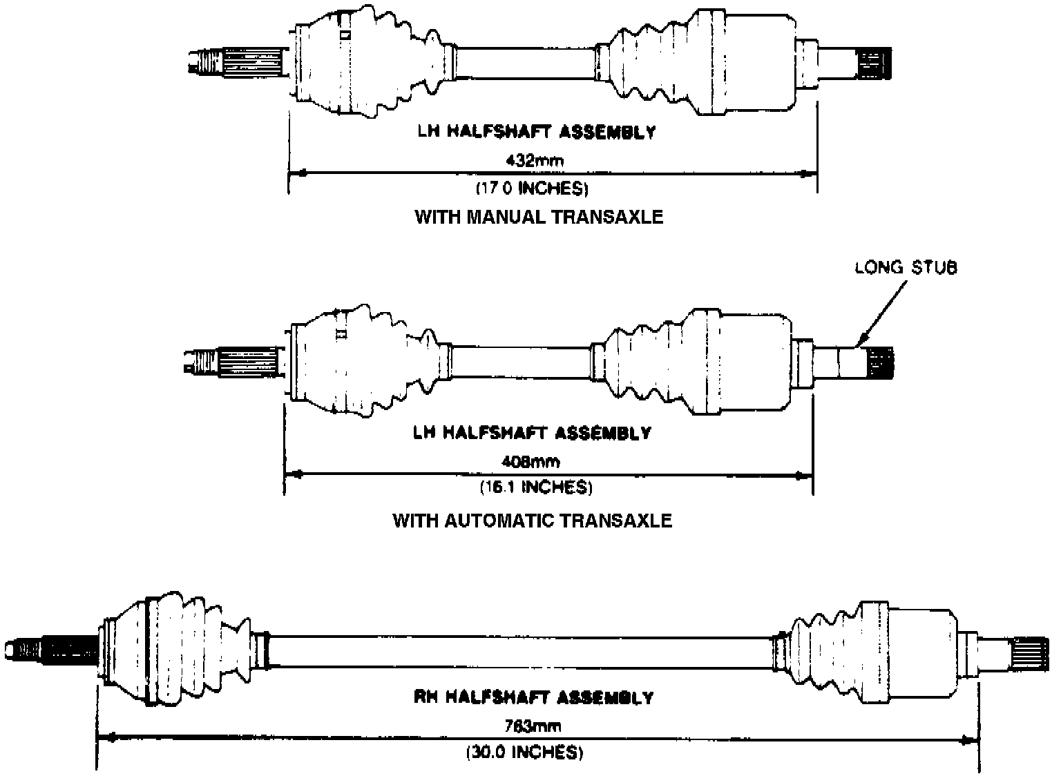 Driveshaft Assembled Lengths: