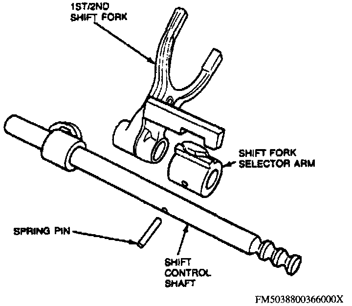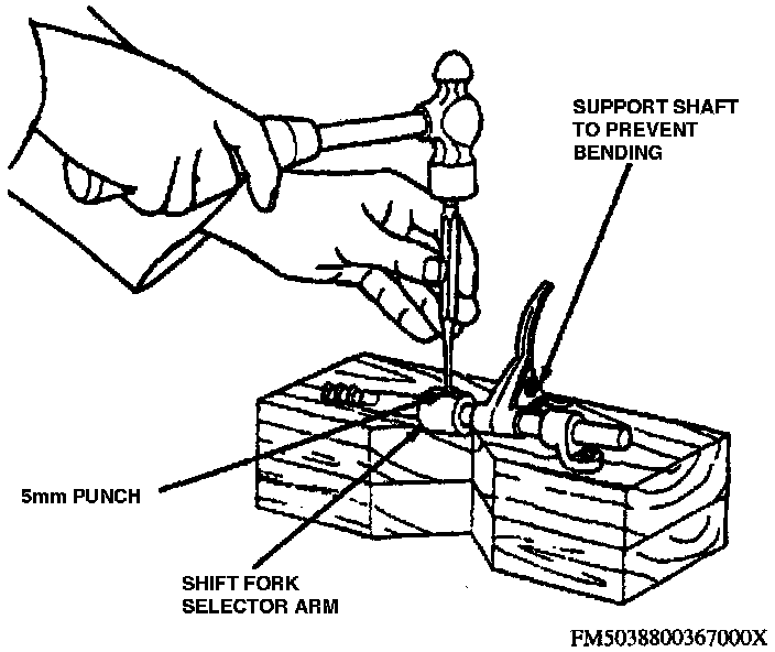 4. Remove fork control spring pin using 5 mm punch, then remove fork control block from shift control shaft.