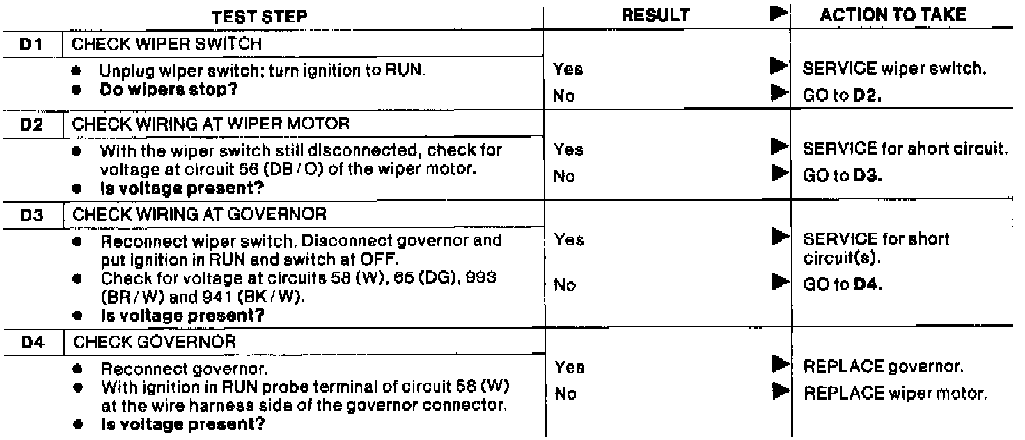 Test D: Wipers Continue To Run When Switch Is Turned Off.: