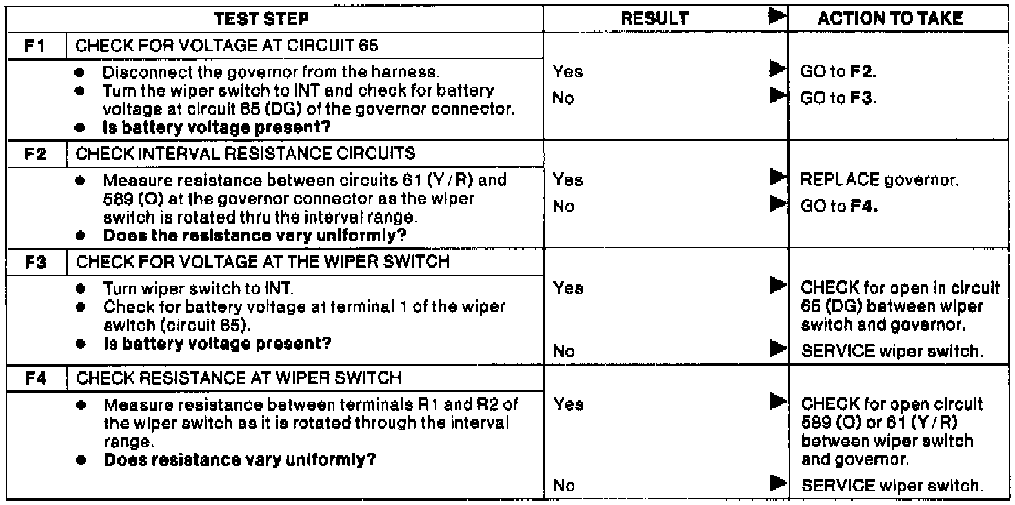 Test F: Windsheild Wipers Inoperative In INT, Low & High Speed Ok.: