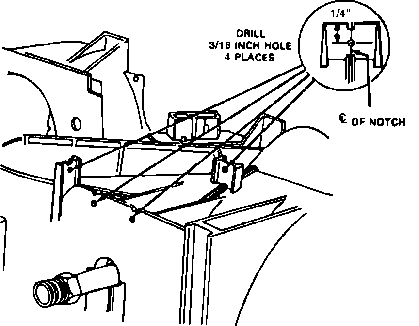 15. Drill a 3/16 inch hole in both upright tabs on top of evaporator case, Fig. 11.
