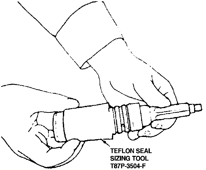 8. Slowly install seal sizing tool T87P-3504-F, or equivalent, over valve sleeve rings. Ensure rings are not being bent over or out of grooves as tube is slid over them.