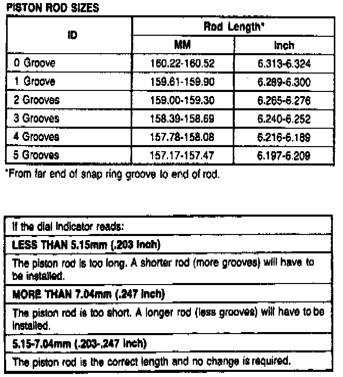 6. Select a new piston rod using the Servo Rod Selection Chart. Install piston rod and repeat steps 1 through 5 to verify amount of piston travel.