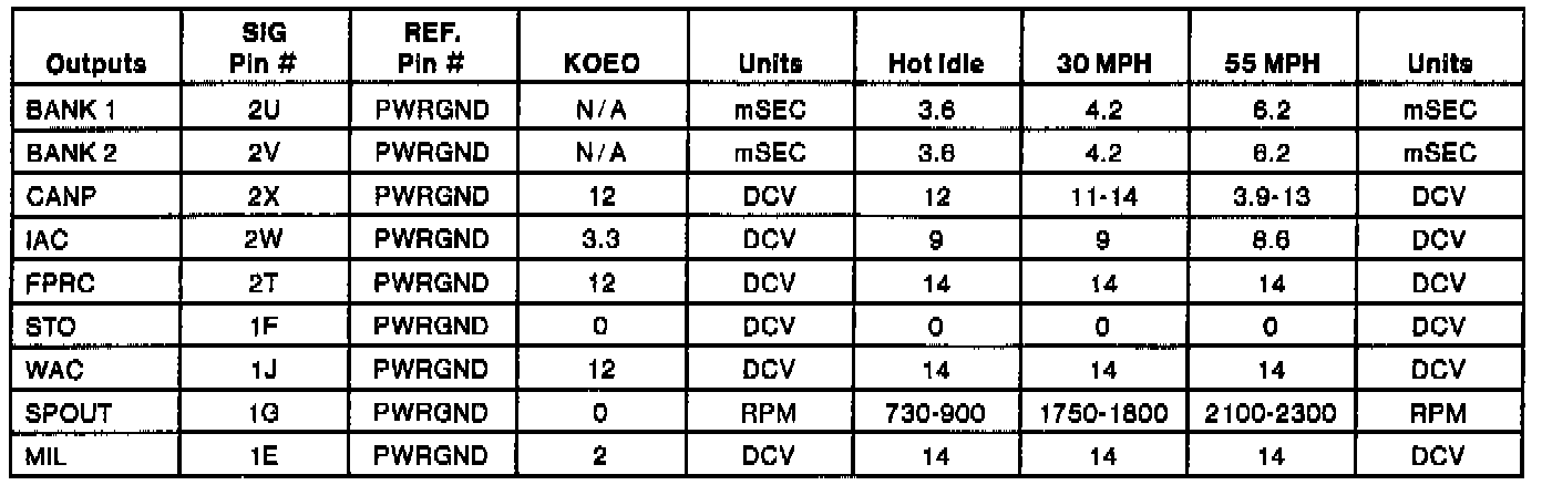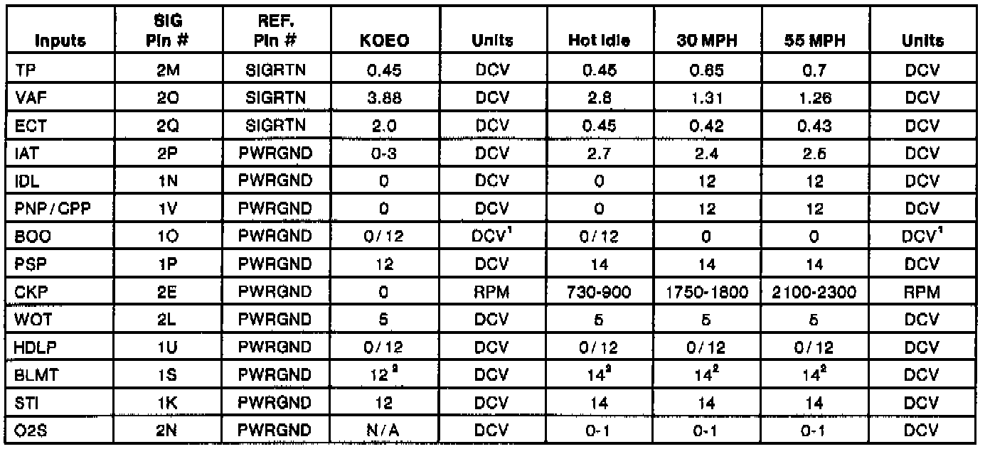 NOTE: For tests involving switches the values will be: switch OFF (released)/switch ON (depressed).Inputs