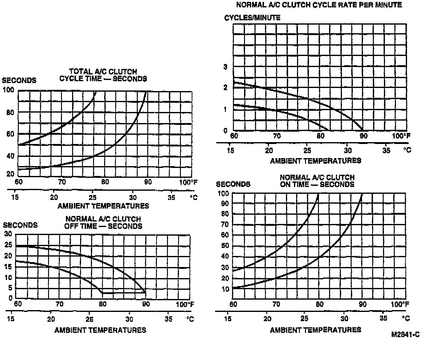 ^ An A/C clutch cycle is the time the A/C clutch is engaged plus the time it is disengaged (time on plus time off).
