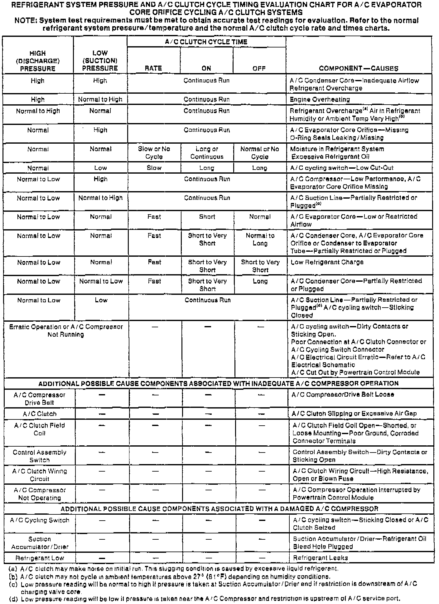 Refrigerant System Pressure And A/C Clutch Cycling Time Evaluation Chart: