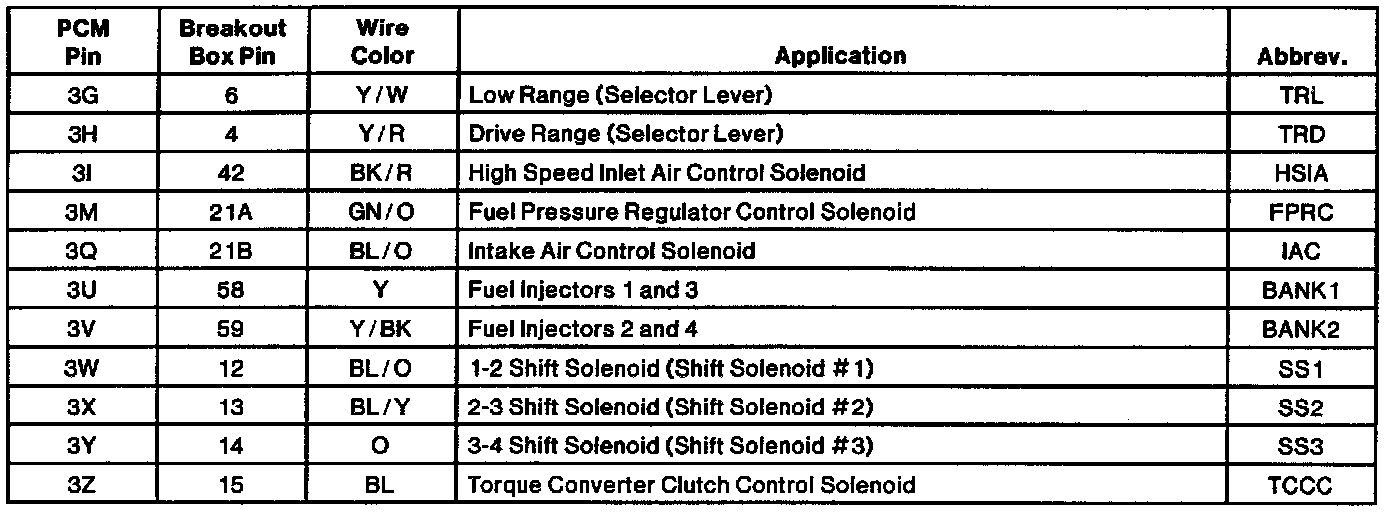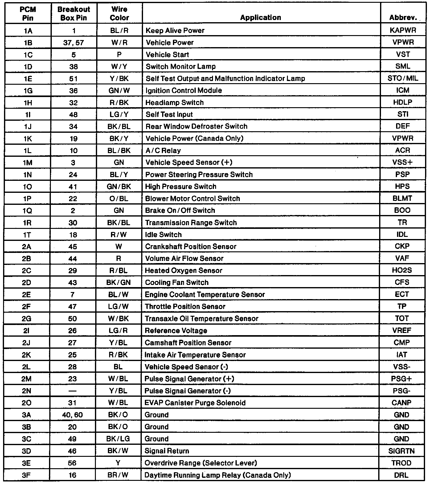 Engine Electrical Connector Pin Usage: