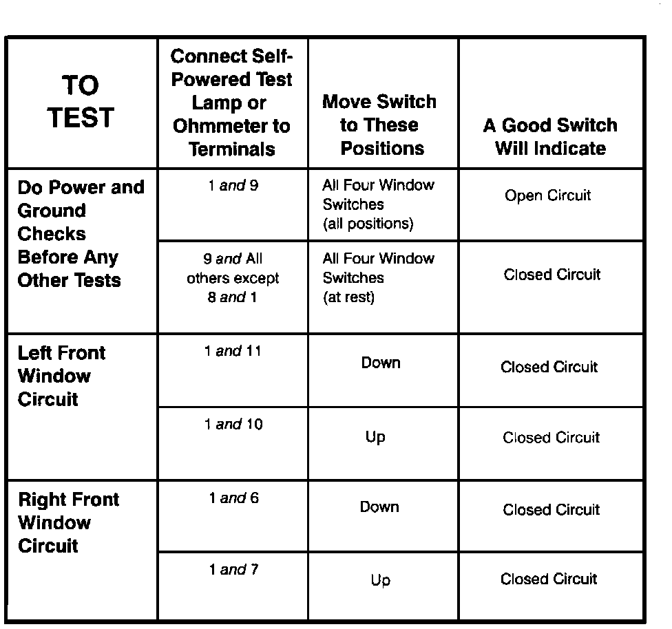 Power Window Switch: Testing and Inspection