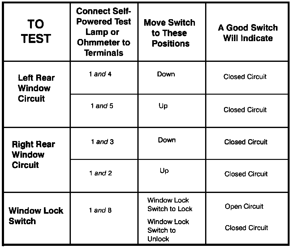 Master Window Control Switch - Component Testing Procedure: