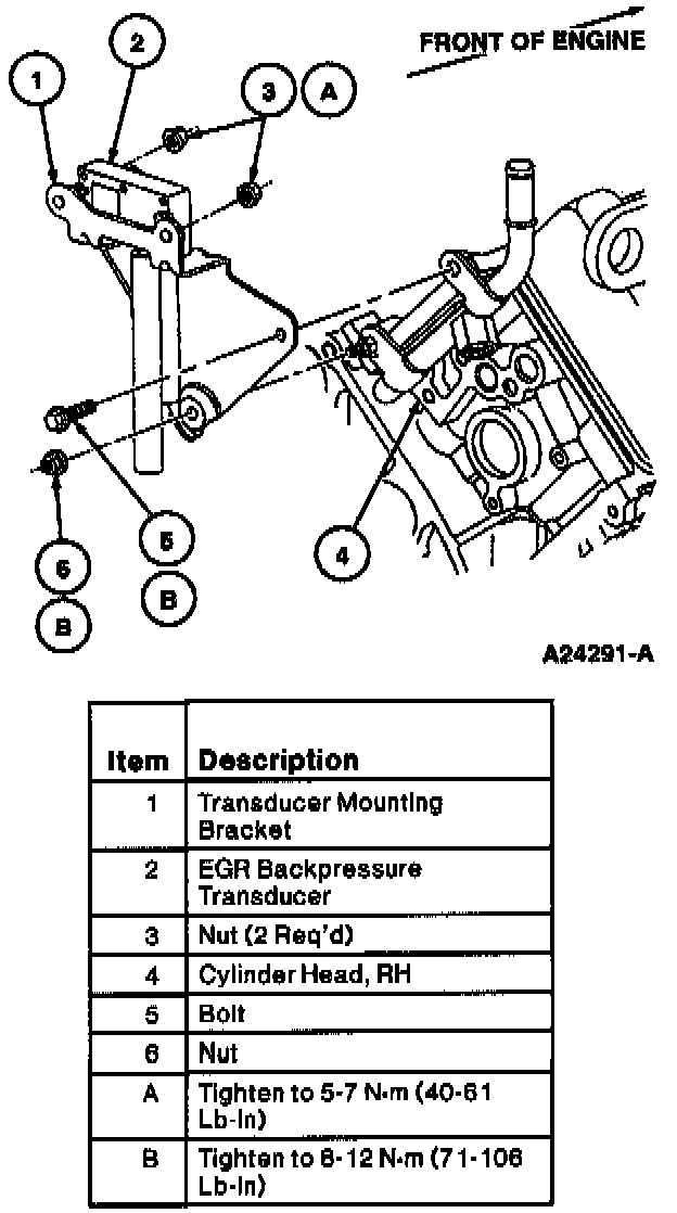 3. Tighten EGR backpressure transducer retaining nuts to 5-7 Nm (40-61 lb in).