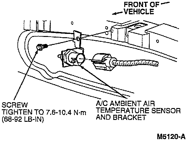 2. Install the retaining screw to the A/C ambient air temperature sensor and bracket to the grille opening reinforcement.
