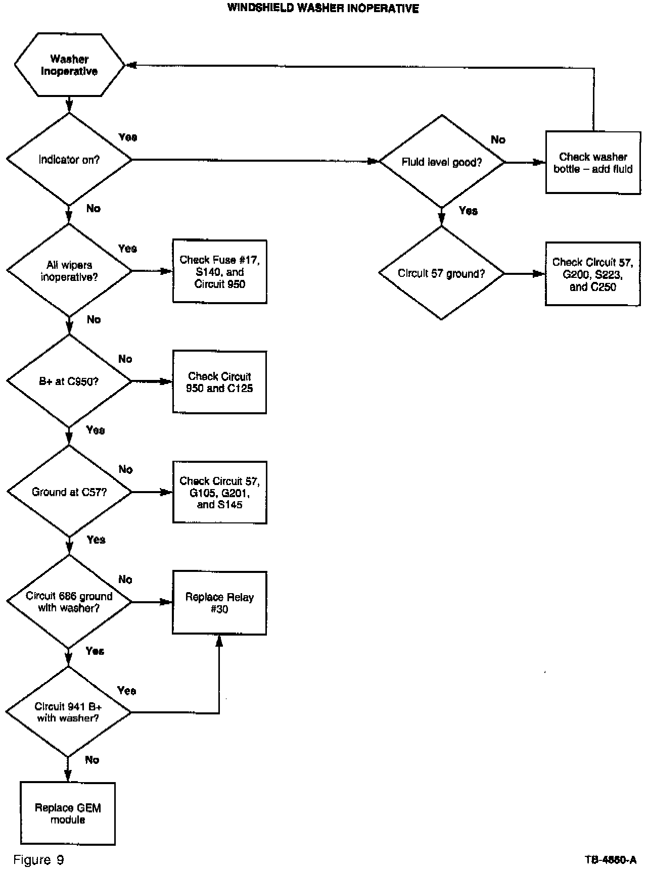 Refer to the following flowcharts (Figures 1-10) when diagnosing relay-equipped subsystems. The flowcharts are designed to aid in diagnosis and reduce the possibility of repeat repairs.