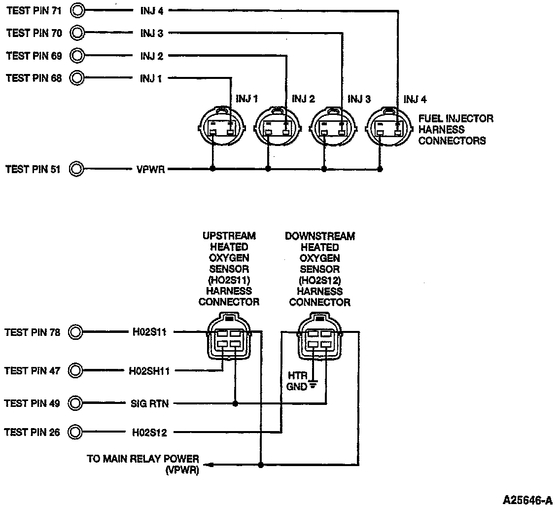 Fuel Injector And Heated Oxygen Sensor Harness Connectors: