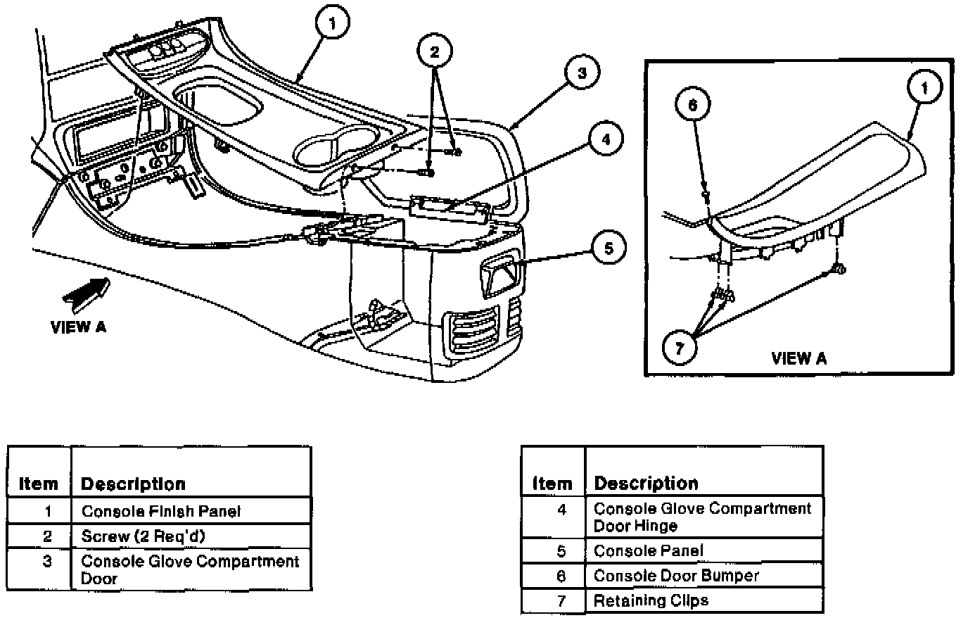 1. Open console glove compartment door to access screws to console finish panel.