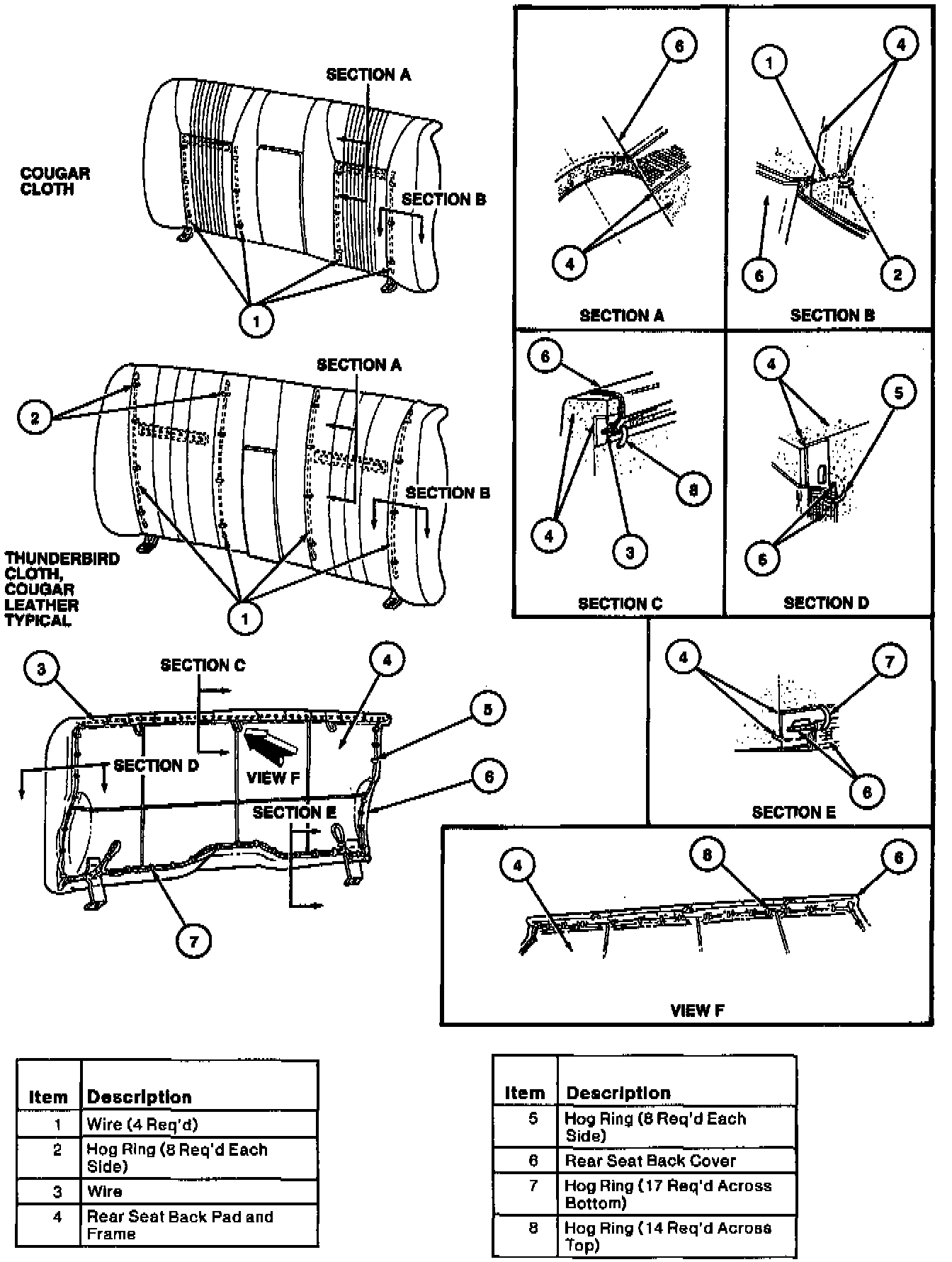 9. Cut three hog rings from each bolster front seat armature listing wires and remove each front seat armature wire from each bolster listing.