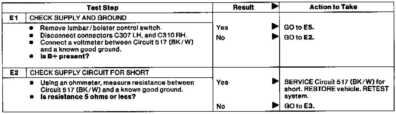 Test E: Power Lumbar Support Does Not Work Properly