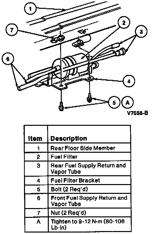 1. Install the fuel filter into the fuel filter bracket, ensuring the proper direction of flow.