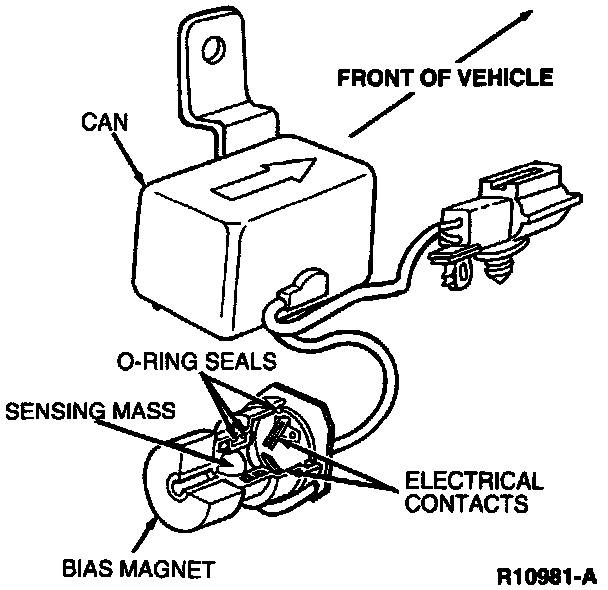 - When an impact occurs that requires air bag inflation, the sensor contacts close, completing the electrical circuit necessary for system operation.