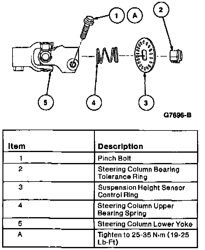 3. Install suspension height sensor control ring steering column bearing tolerance ring, steering column upper bearing spring and steering column lower yoke to steering column shaft assembly. Tighten pinch bolt to 25-35 Nm (19-25 ft. lbs.).