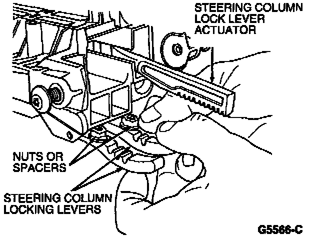 8. Place two nuts or spacers to hold steering column lock left hand lever and steering column locking lever (RH) away from steering actuator housing.