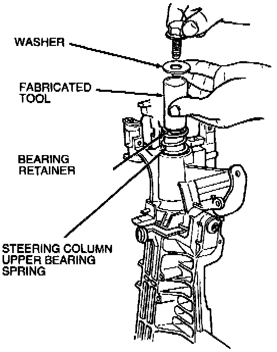 13. Install steering column upper bearing spring and new bearing retainer on top side of steering column upper bearing spring using A19.05 x 60.32 mm (3/4 inch by 2-3/8 inch) PVC pipe.