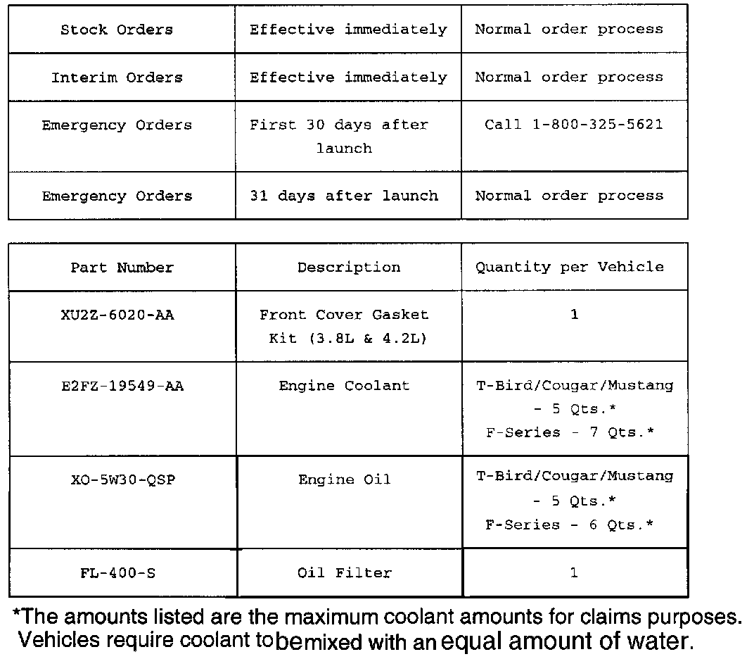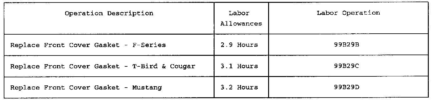 These labor times reflect a different repair procedure than the Workshop Manual for these model year vehicles. The major differences are that the oil pan is not removed on any vehicle and ROLOC(TM) bristle discs are recommended for gasket removal. Please follow the technical instructions on Attachment III. By following these instructions, the labor times are achievable. To assist technicians a video presentation highlighting the key steps of the repair is planned for the first quarter of 2000. Watch for details in the recall newsletter, which can be accessed through http://www.qcdealer.com/.